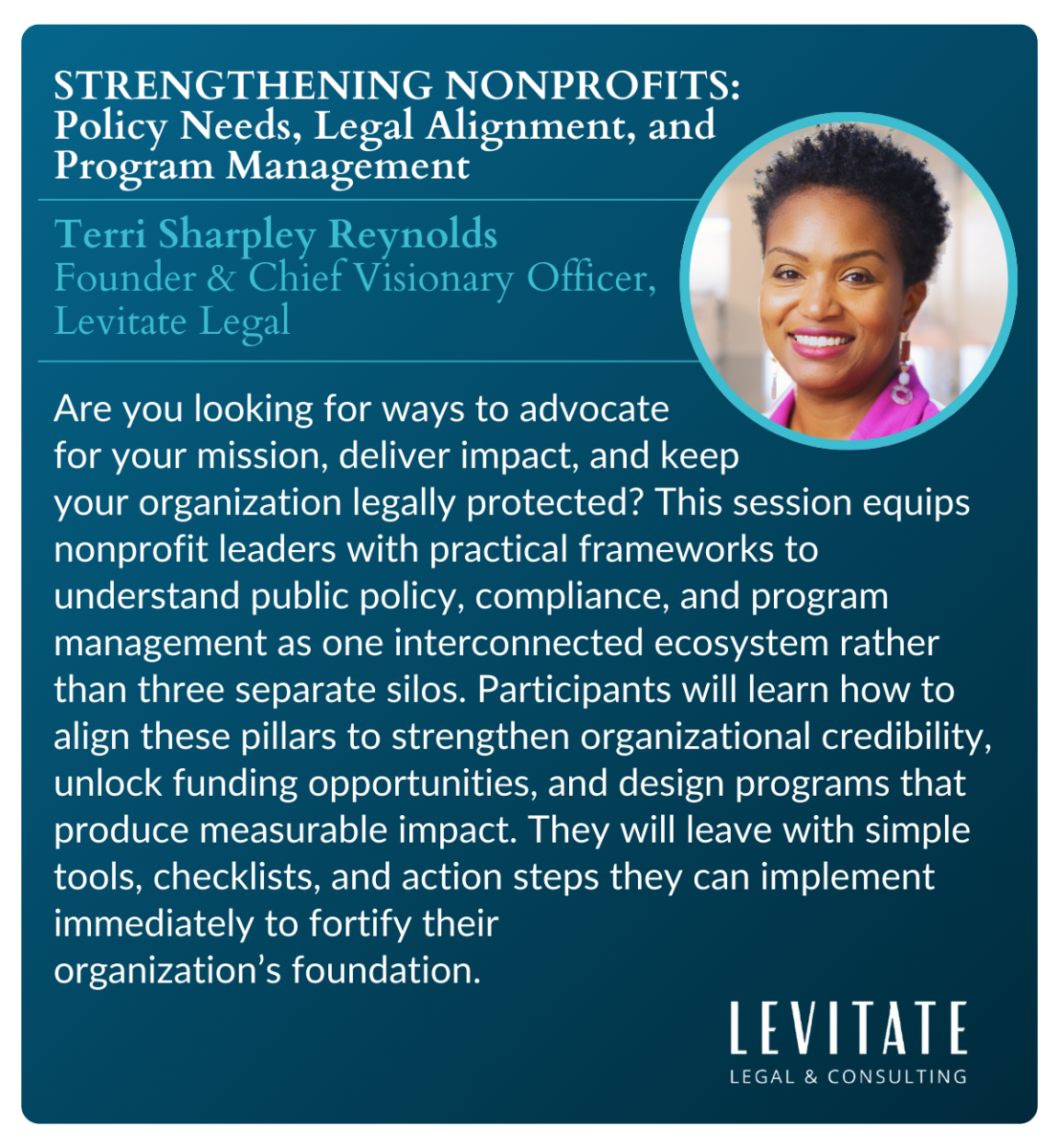 Terri Sharpley Reynolds, Founder and Chief Visionary Officer, Levitate Legal |