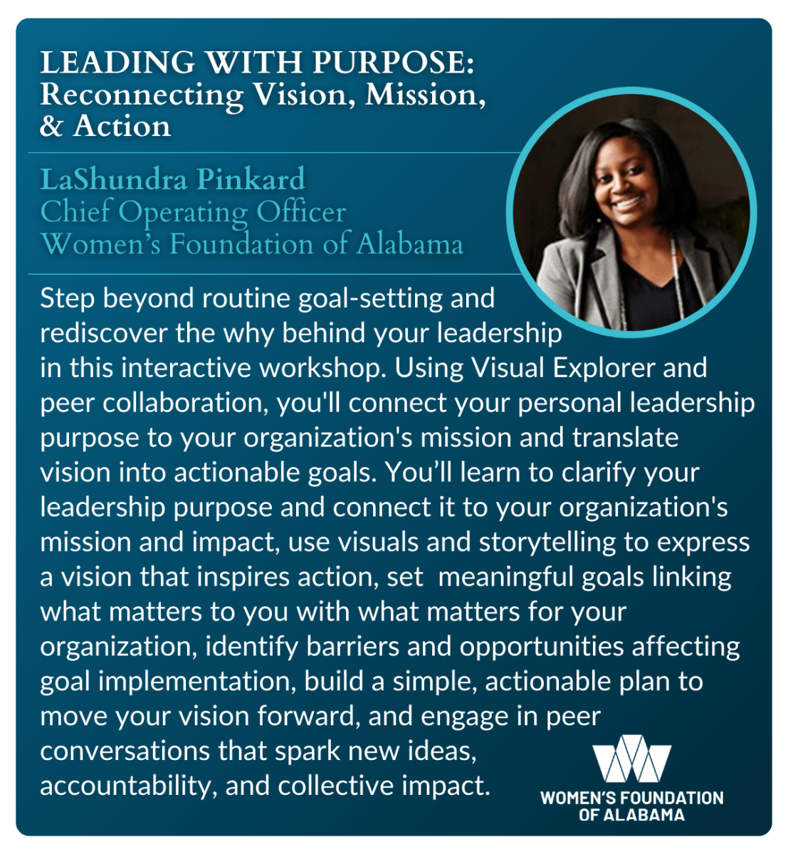 LaShundra Pinkard, Chief Operating Officer, Women’s Foundation of Alabama |