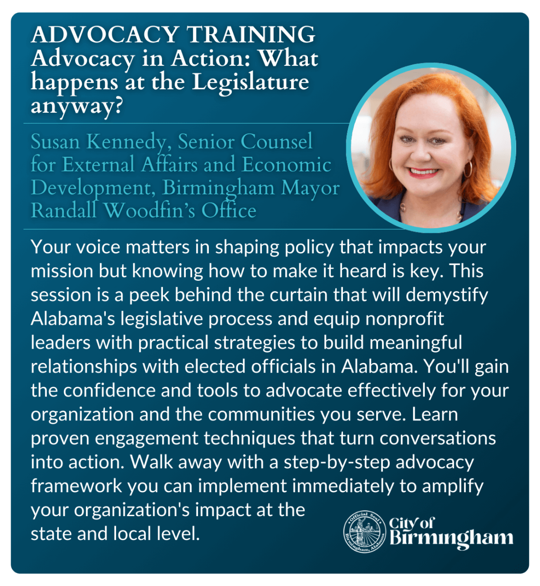 This summit is designed to equip you with practical tools, inspire fresh thinking, and remind you that you're not alone in this work. The Alabama Association of Nonprofits is here as your trusted partner—helping you navigate change, amplify your voice, and achieve greater impact.